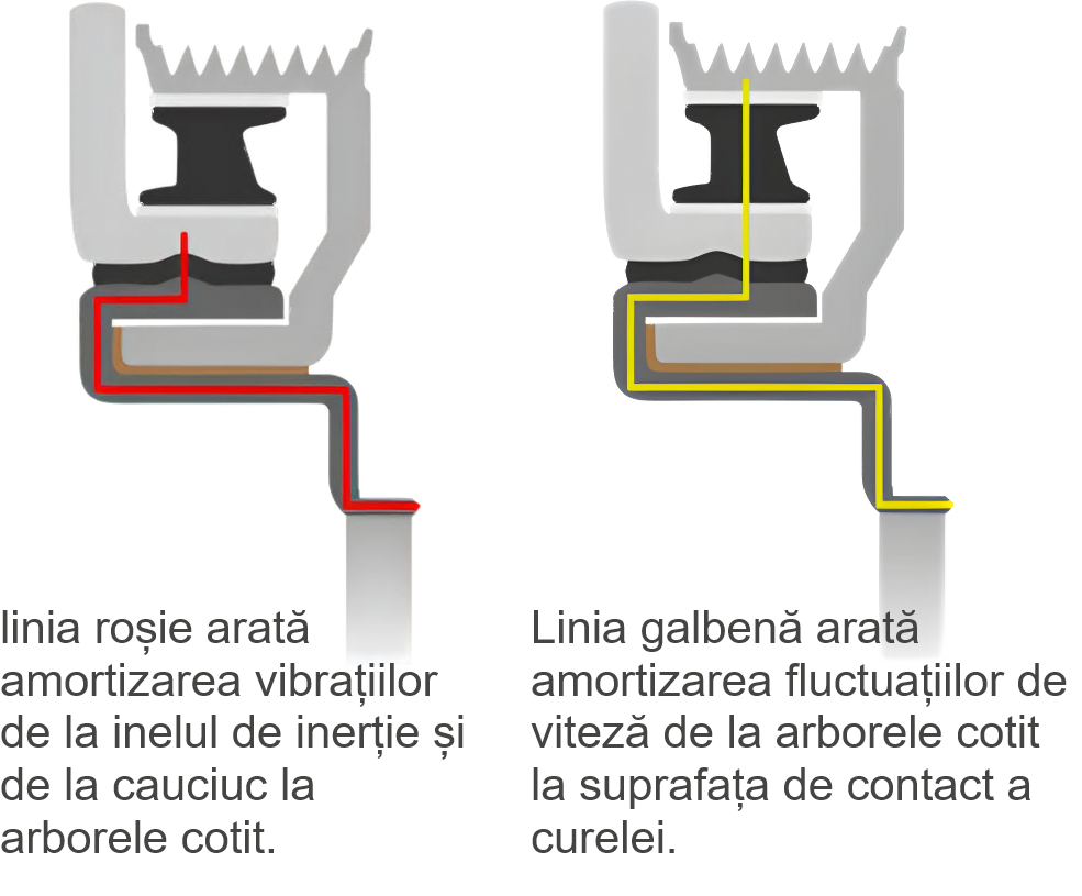 În cazul în care cauciucul suplimentar pentru absorbția fluctuațiilor de viteză se uzează sau se rupe, fulia nu se desprinde, ci devine o fulie solidă.