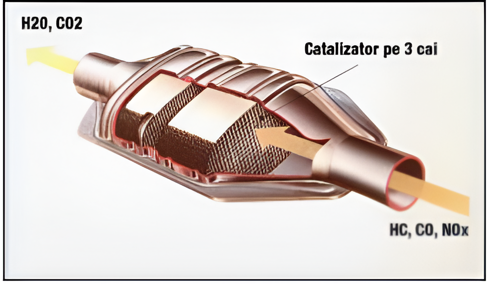 - Catalizatorul pe 3 căi pentru M.A.S. (motoare cu aprindere prin scânteie, alimentate cu benzină)