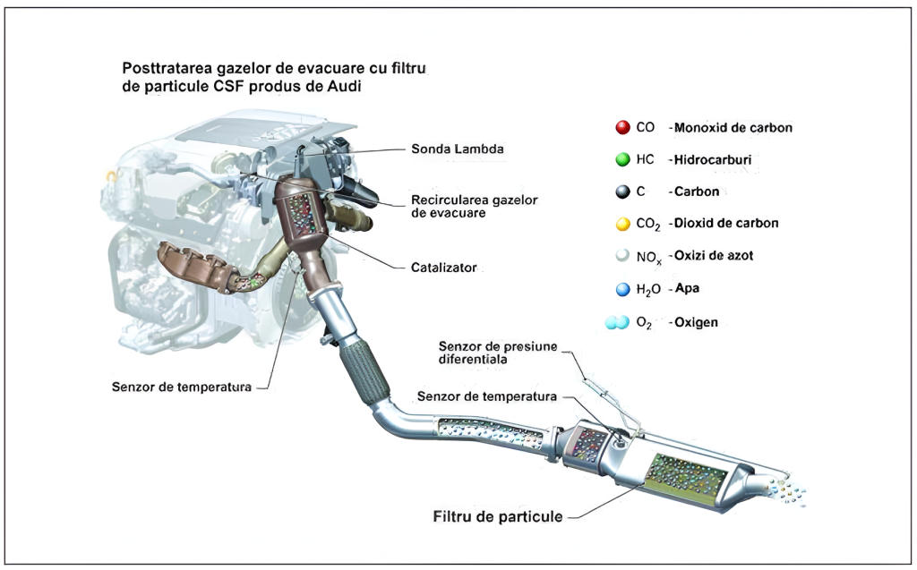 Catalizatorul şi filtrul de particule pentru motoarele Diesel