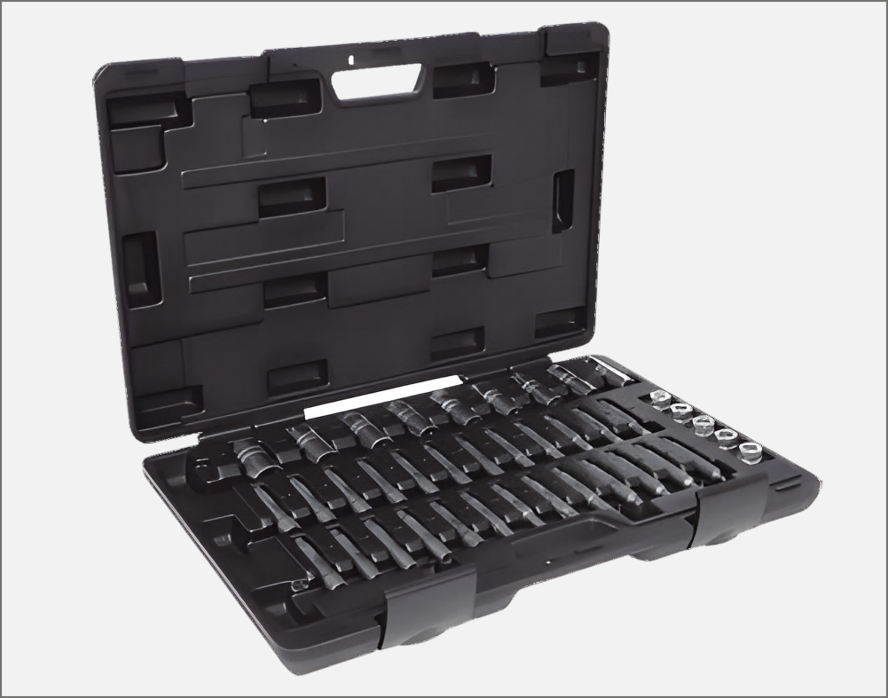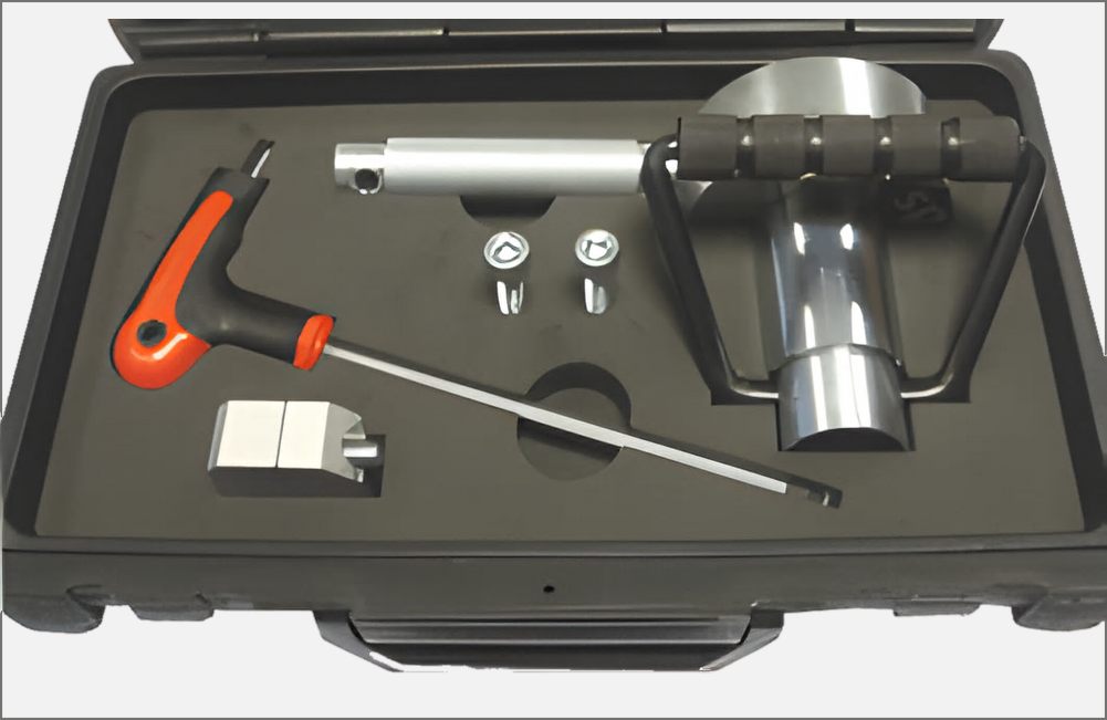 Set universal pentru demontarea și montarea flanșelor și a rulmenților de roți, fără a fi necesară demontarea montanții suspensiei sau a butucilor de roți din vehicul (dacă accesul permite). Demontați și instalați rulmenții de roată fără a demonta butucul. Această unealtă elimină practic deteriorarea componentelor vehiculului și reduce timpul necesar pentru a finaliza lucrarea în ansamblu.