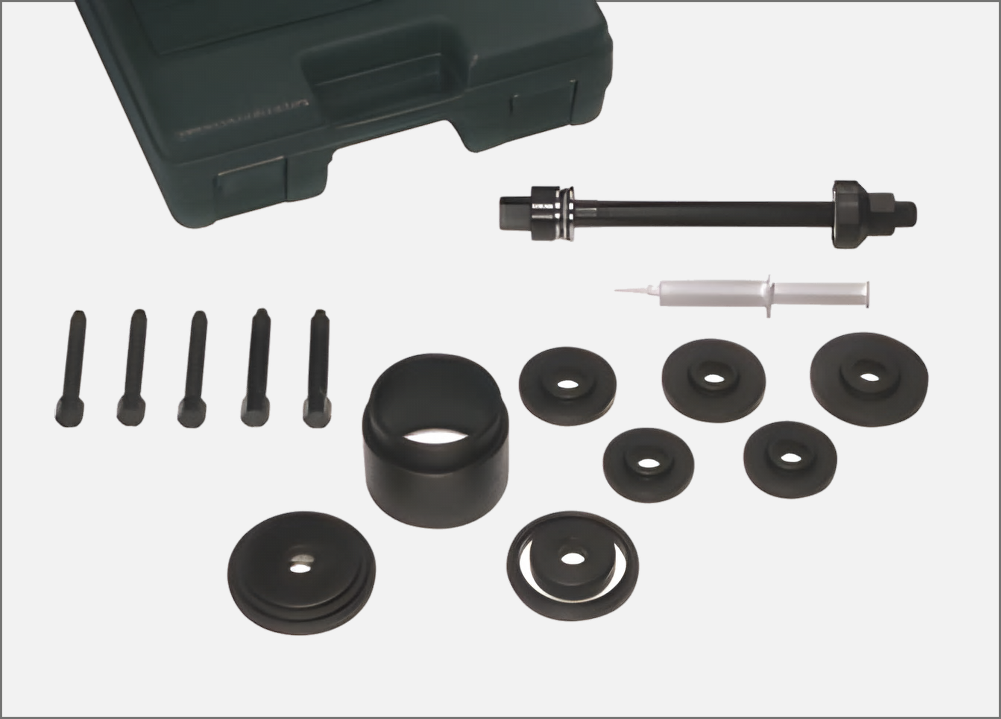 Acesta este un sistem universal pentru îndepărtarea și montarea bucșelor, rulmenților și garniturilor de suspensie. Prin selectarea manșoanelor cu diametrul corespunzător, bucșa / rulmentul / garnitura este presată sau trasă prin acțiunea de rotire a piulițelor axului în direcții opuse.