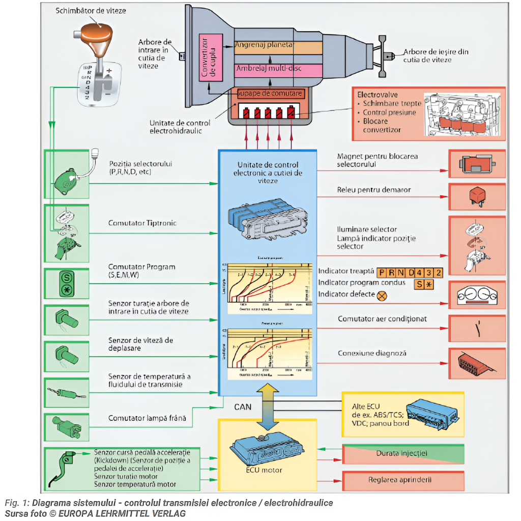 Controlul electrohidraulic al cutiei de viteze implică înregistrarea unor anumite stări de operare de către unii senzori.