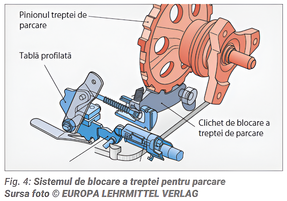 În poziția P, arborele de ieșire din cutia de viteze automată este blocat mecanic de un clichet care împiedică mișcarea involuntară a vehiculului (Fig. 4).