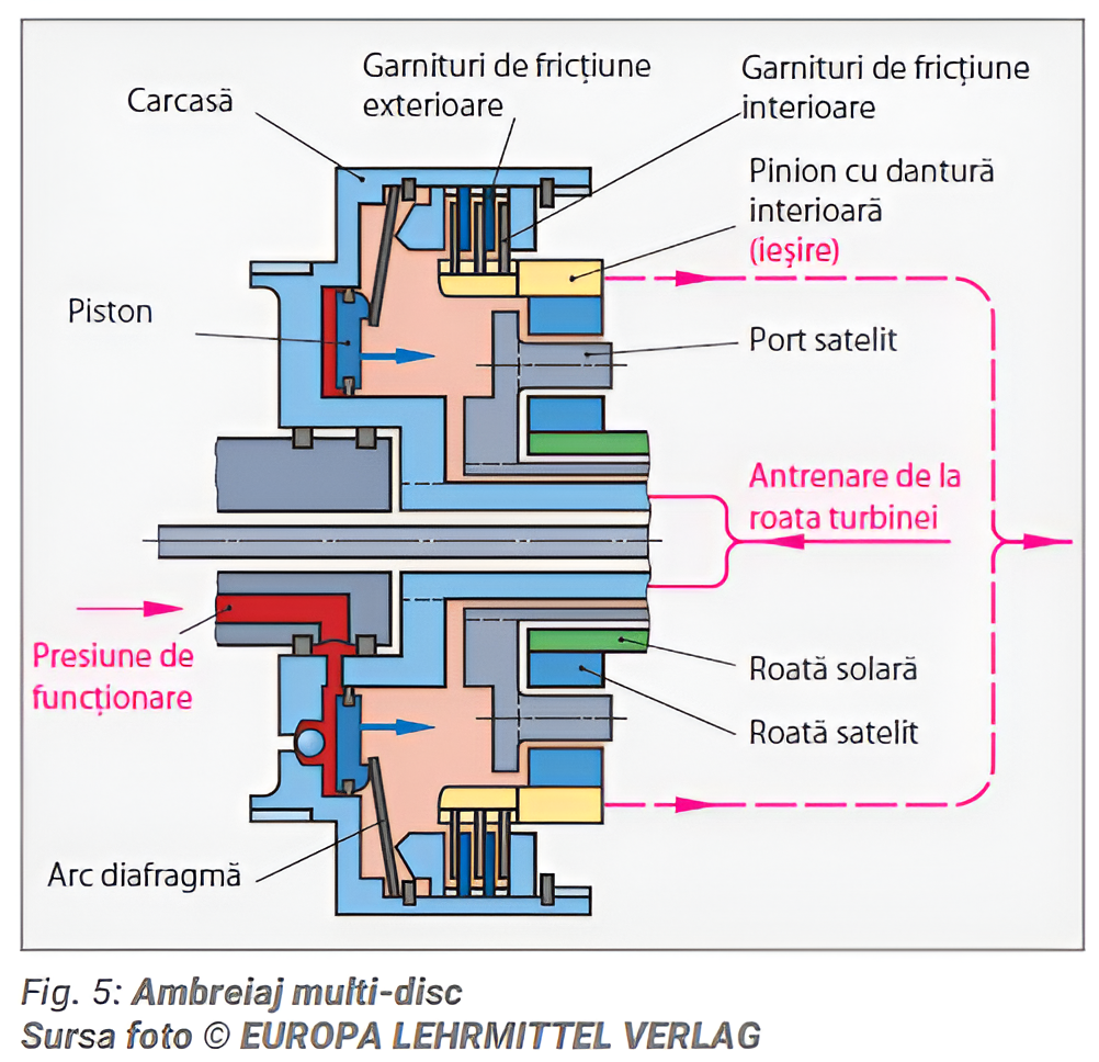 ● cuplarea și decuplarea ambreiajelor multidisc prin intermediul presiunii de ulei.