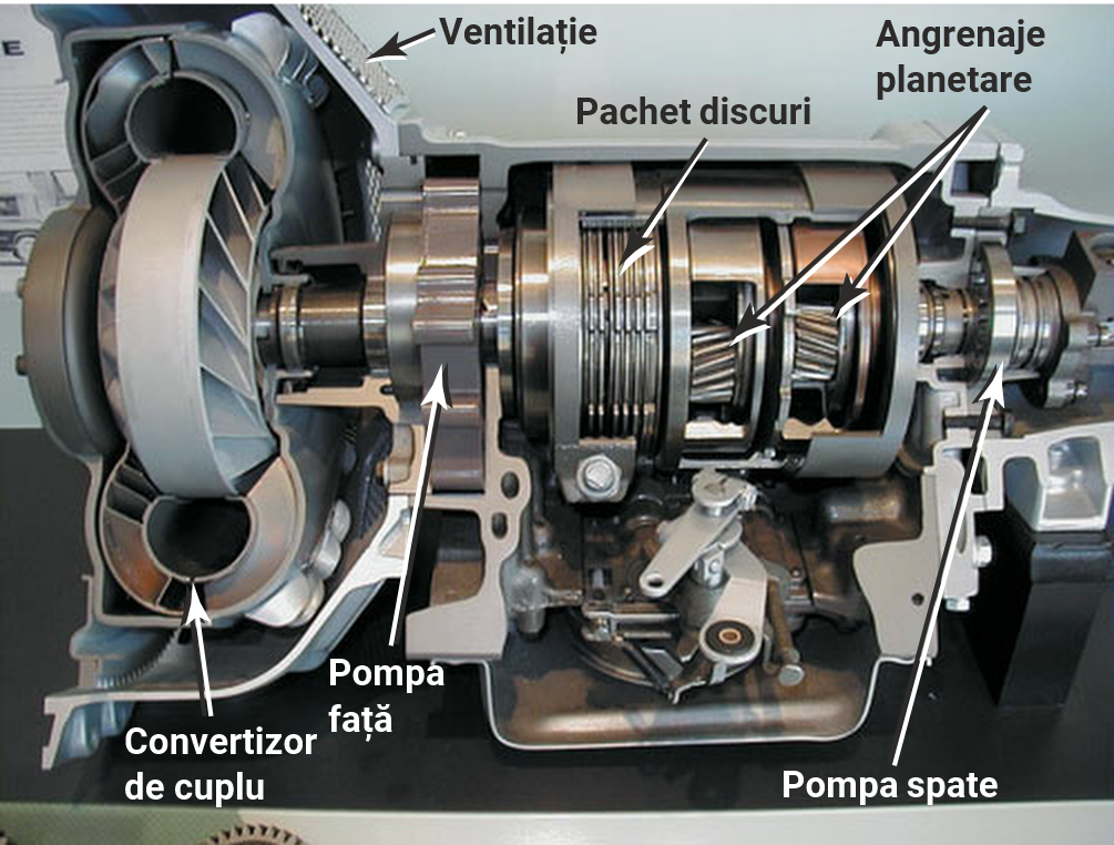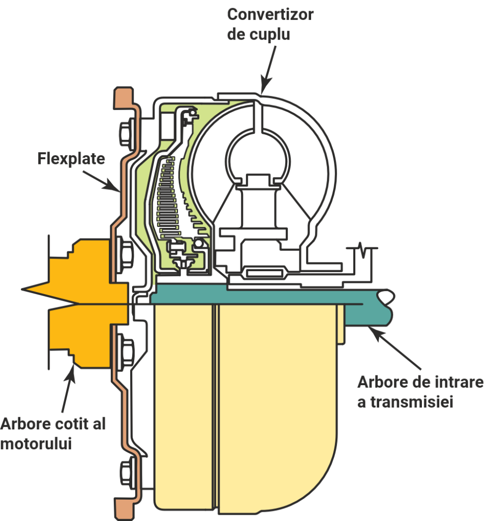 Convertizorul de cuplu este amplasat între motor și transmisie/transmisie și îndeplinește următoarele funcții: