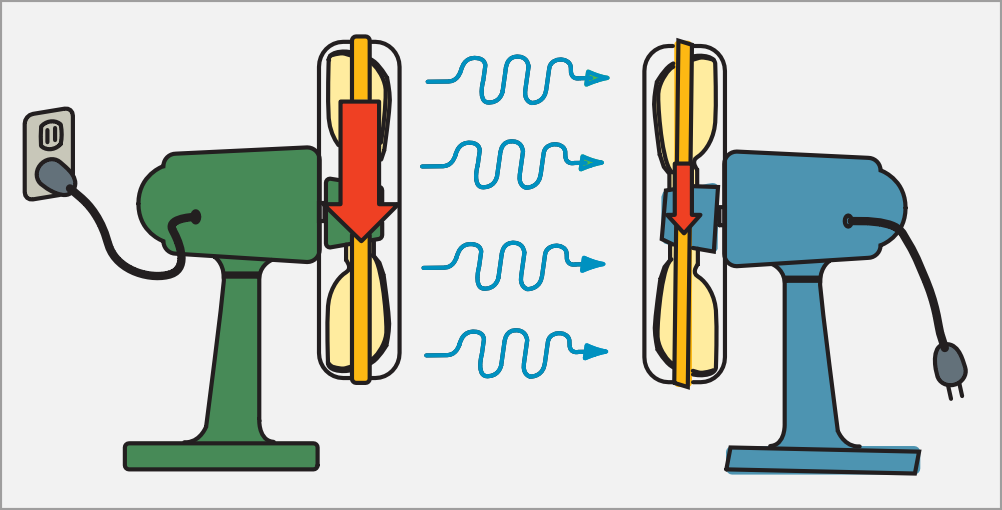 Un convertizor de cuplu acționează ca două ventilatoare orientate unul spre celălalt. Aerul împins de ventilatorul alimentat determină paletele ventilatorului nealimentat să se rotească. În cazul unui convertor de cuplu, cele două ventilatoare sunt turbina și rotorul. Fluidul de transmisie este aerul care este forțat să rotească ventilatorul nealimentat.