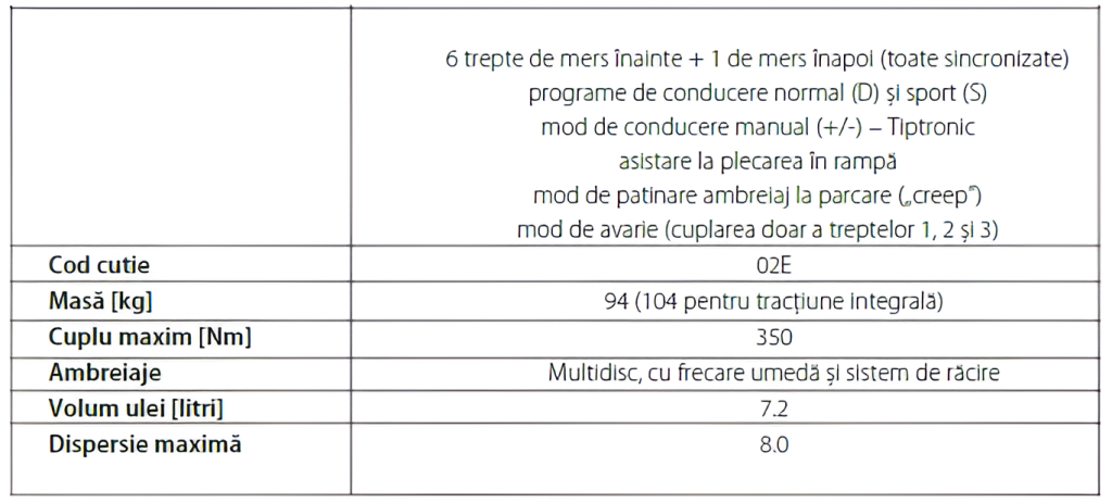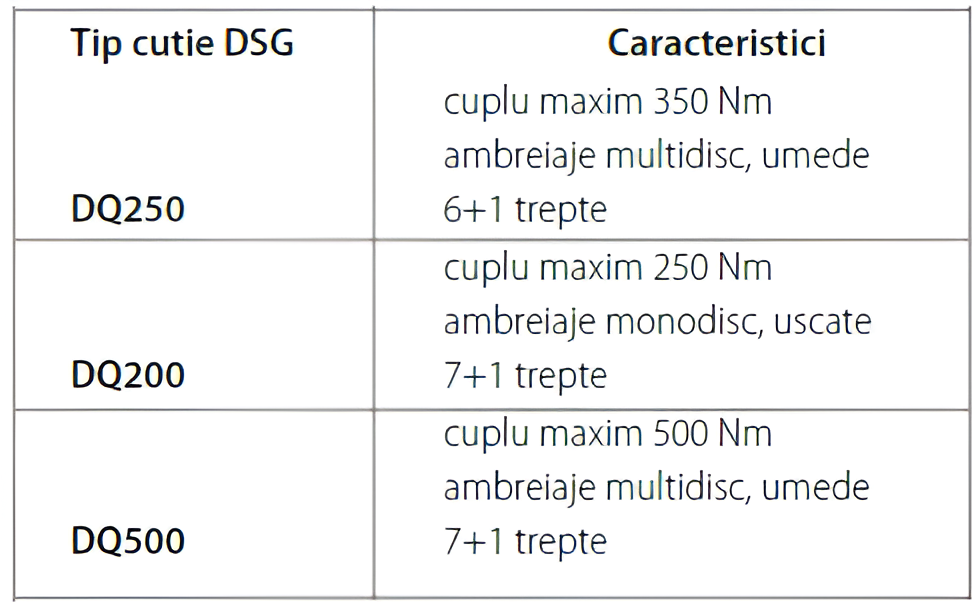 CARACTERISTICI TEHNICE CUTIE DSG (DQ250)