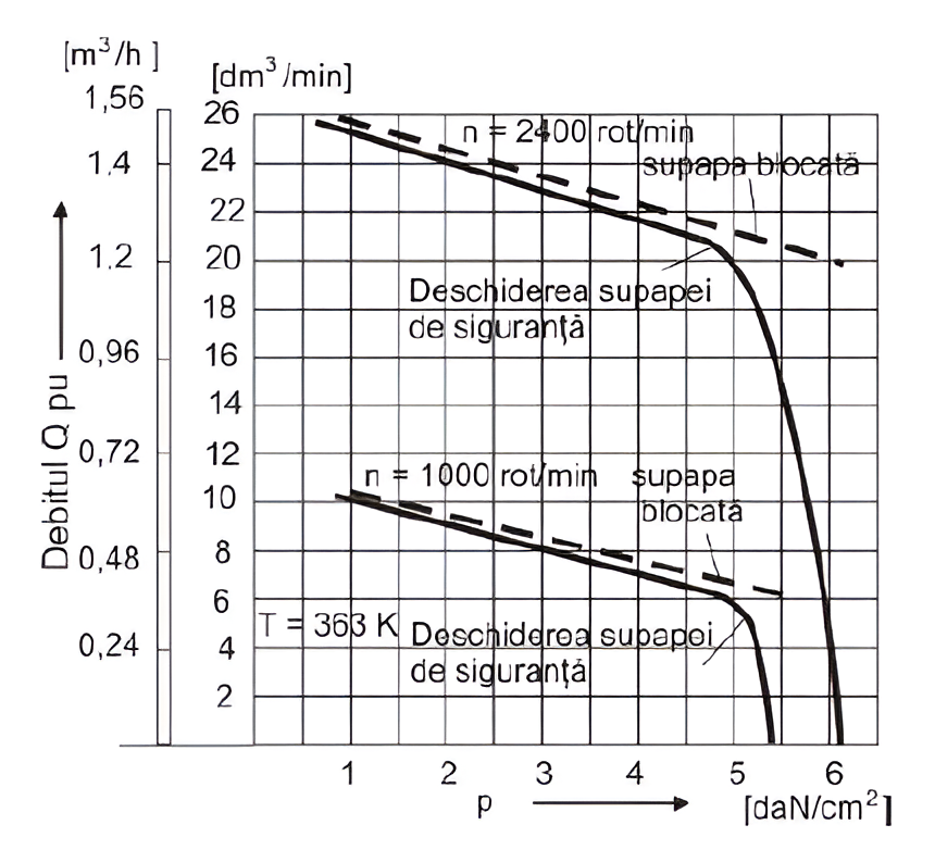 Caracteristica de debit în funcţie de presiunea de refulare –