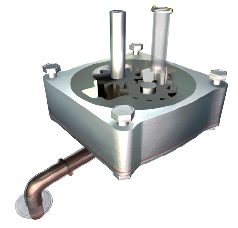 Pompa 4 este antrenată cu un motor electric de curent continuu 2. Uleiul se află într-un rezervor 1, unde se realizează încălzirea cu rezistenţe electrice. Instalaţia este prevăzută cu o supapă de siguranţă 5. Presostatul 6 este intercalat în circuitul electric de alimentare al motorului electric de antrenare, pentru oprirea motorului electric, după atingerea presiunii de 1 bar (la comutarea pentru măsurarea timpului de amorsare).