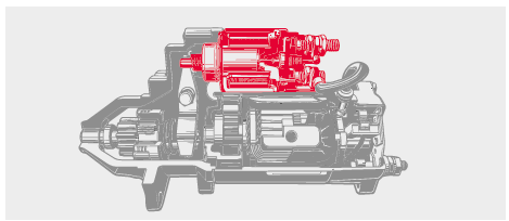 Pentru a realiza acest lucru, contactul de pornire trebuie să alimenteze cu curent bobina electromagnetică. Această bobină atrage un miez de fier (plonjor), care, mecanic (printr-o furcă de debreiere), deplasează pinionul demarorului în angrenare cu coroana dințată de pe volantul motorului. La sfârșitul cursei sale, miezul de fier închide simultan puntea de contact, ceea ce pornește electromotorul. În majoritatea tipurilor de electromotoare, acesta folosește apoi un reductor pentru a învârti motorul.