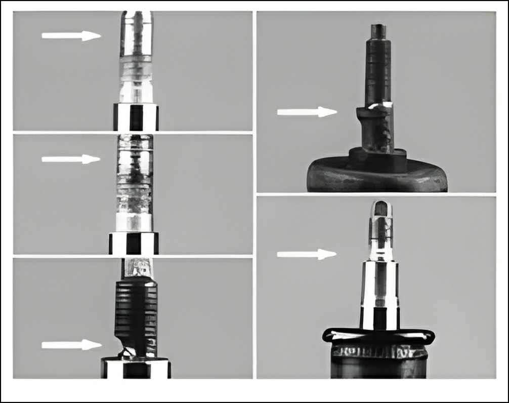 O altă problemă frecventă cauzată de unelte și proceduri incorecte este deteriorarea filetelor tijei. Acest lucru se întâmplă în timpul montării dacă piulița superioară este plasată incorect peste filetul tijei și apoi strânsă cu un pistol cu aer comprimat. Acest lucru va deteriora filetul. În plus, dacă șaibele kitului de montare sunt instalate în ordine incorectă, una dintre ele se poate desprinde, lovind partea inferioară a tijei tijei. Pe lângă faptul că va crea zgomot, acest lucru va duce adesea la deteriorarea unei părți a filetului sau a tijei în sine.