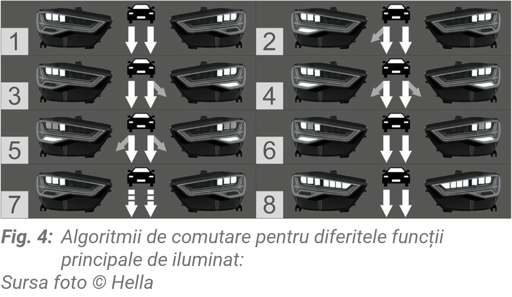 În Figura 4 sunt prezentați algoritmii de comutare pentru diferitele funcții principale de iluminat: