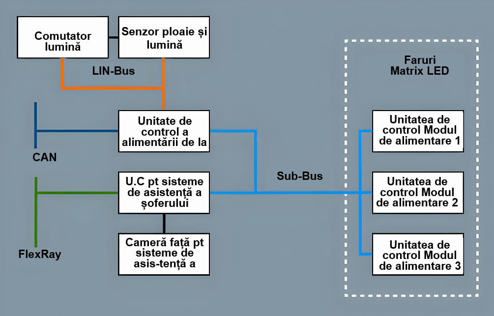 Farul Matrix LED sau unitățile de control trebuie să proceseze o multitudine de date de la diferite surse de la bordul autovehiculului pentru a calcula și a realiza funcțiile luminoase individuale.