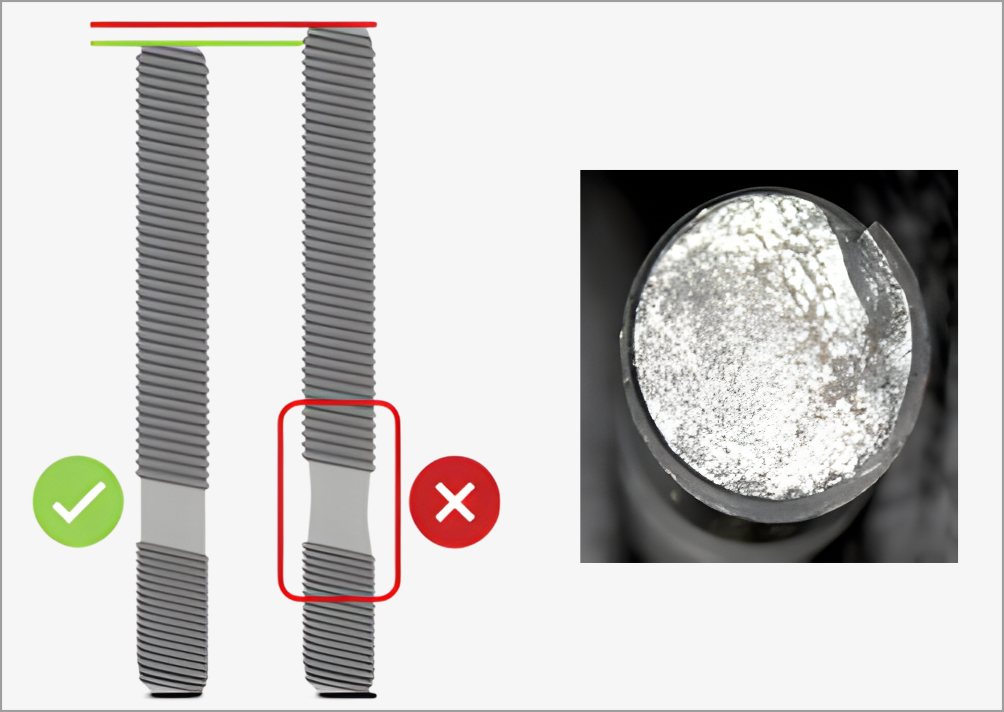 În figura 6, sunt prezentate un element de fixare în stare bună și un element de fixare care a fost strâns excesiv, a depășit limita de elasticitate și a intrat în limita de plasticitate, acum nu va reveni la lungimea inițială.