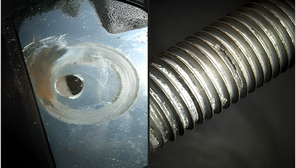 În figura 8 este prezentată distrugerea filetului blocului motor din aluminiu, material de aluminiu în filetul dispozitivului de fixare.