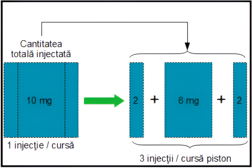 B – sfârşitul injecției divizate