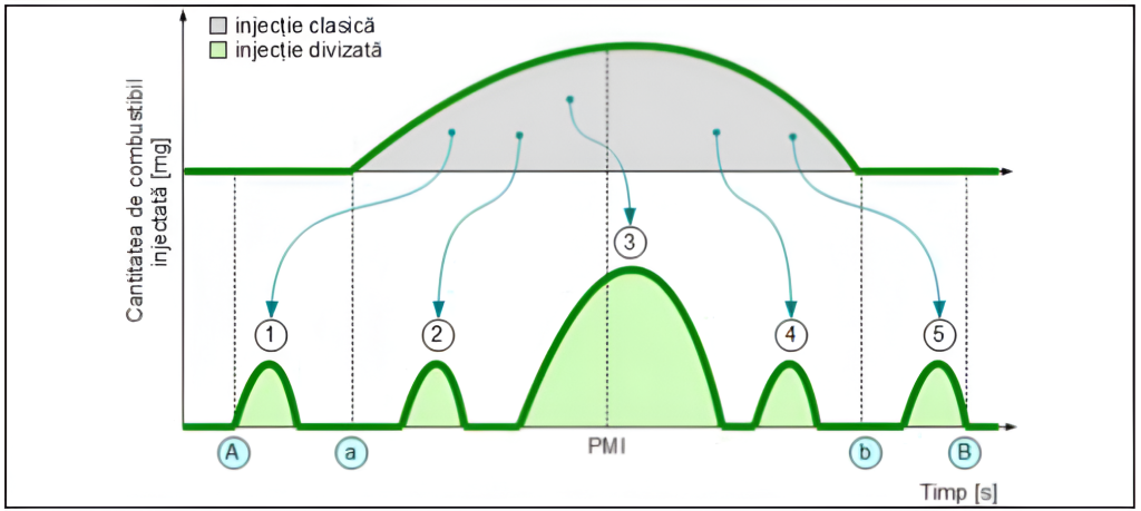 Sistemele moderne de injecție de combustibil ale motoarelor diesel sunt capabile să efectueze 5 injecții pe ciclu motor.