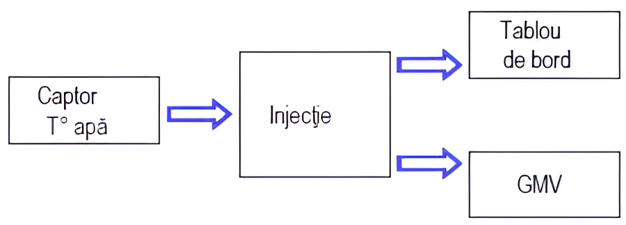 temperatură integrată în circuitul de răcire măsoară temperatura motorului şi transmite un semnal electric către calculator.