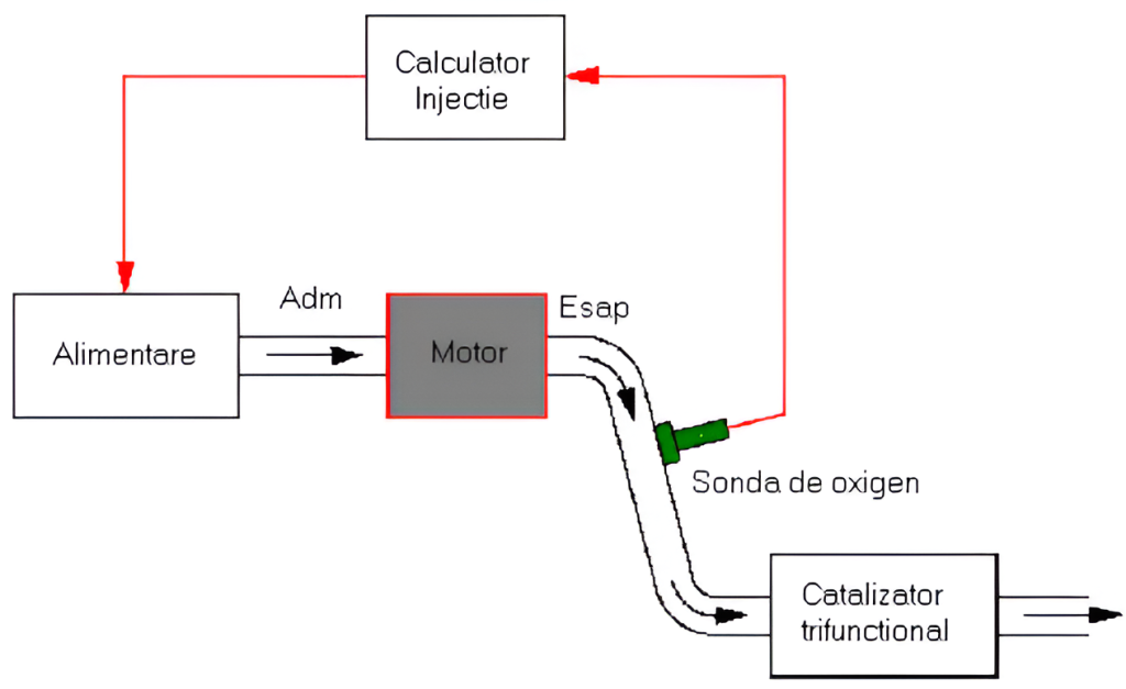 Rolul său este de a informa calculatorul despre conţinutul de oxigen din gazele de eşapament. Un senzor denumit senzor de oxigen sau sonda lambda.