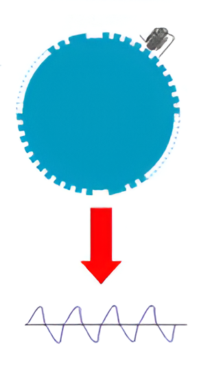 Coroana danturată are dinţi laţi pentru reperarea poziţiei şi dinţi mai înguşti pentru măsurarea vitezei.