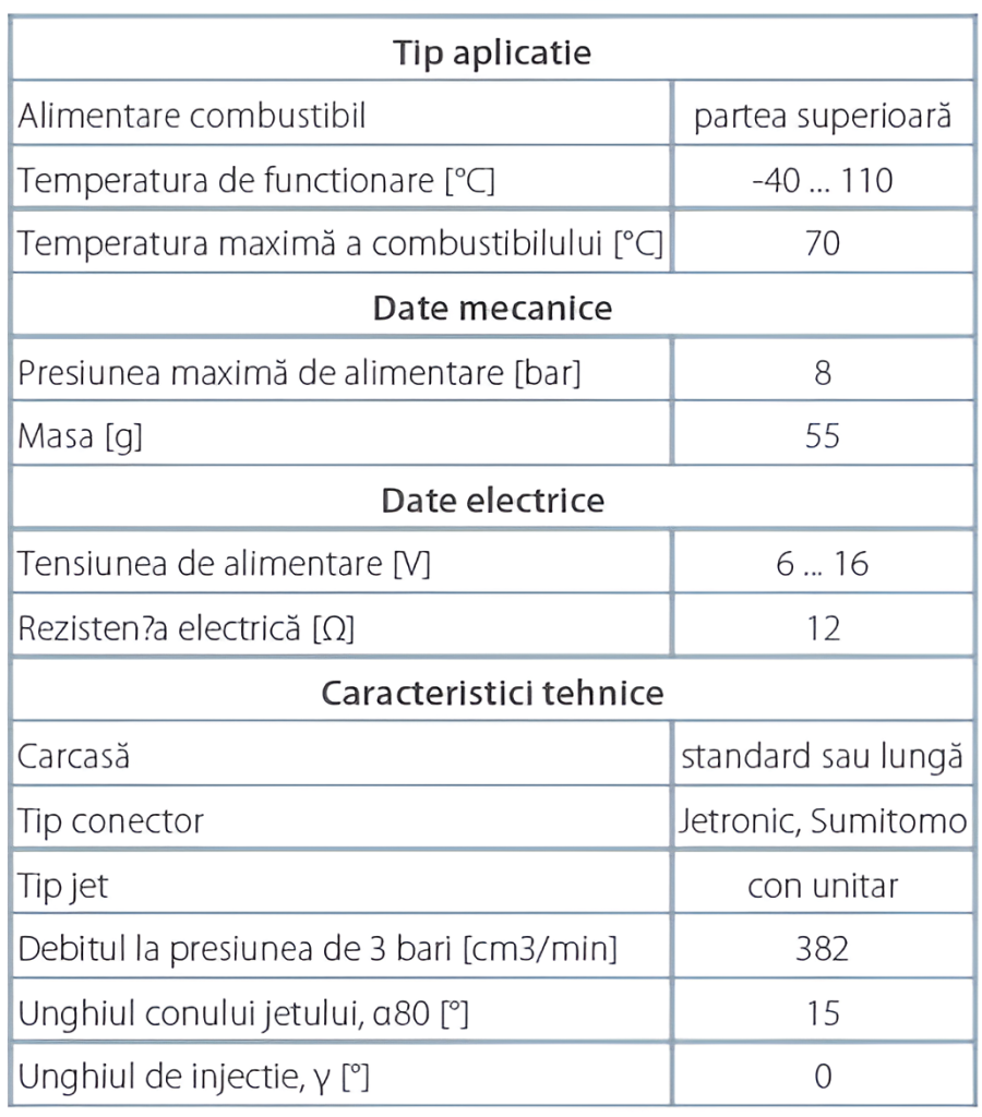 Ω. Acestea sunt alimentate continuu cu tensiunea de la baterie până când curentul atinge o valoare de vârf (t1). În această fază forța electromagnetică generată de solenoid este maximă și acul injectorului este ridicat de pe sediu. În faza de menținere a poziției acului injector (t2) curentul este redus deoarece forța necesară electromagnetică este mai mică. Comanda în tensiune pe durata (t2) este de tipul PWM. Avantajul acestui tip de injectoare este timpul de răspuns mai mic. Dezavantajul este curentul consumat care este mai mare, din acest motiv injectorul se încălzește mai mult. Injectoarele cu curent de saturare sunt alimentate continuu cu tensiunea de la baterie. Rezistența electrică a solenoidului este în jur de 10…17 Ω. Avantajul constă în curent consumat mai mic, deci căldură disipată mai mică, dar au un timp de răspuns mai mare. Este important să se țină cont caracteristicile tehnice ale injectoarelor atunci când se înlocuiesc. Utilizarea unor injectoare cu caracteristici mecanice și electrice diferite poate rezulta în funcționarea defectuoasă a motorului.