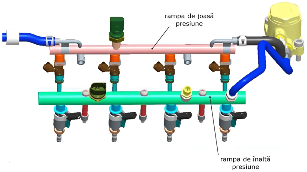 Pentru a îndeplini valorile greutăţii limită şi a numărului de particule cerute de Directiva EU6, a fost adoptat sistemul suplimentar de injecţie MPI. Injectoarele MPI sunt alimentate prin conducta de alimentare de la ieşirea pompei de înaltă presiune astfel încât răcirea interioară a pompei de înaltă presiune este asigurată în timpul funcţionării MPI. Supapa de reglaj minimizează funcţionarea în impulsuri în rampa MPI determinată de către pompa de înaltă presiune care este integrată în această conductă de alimentare de la ieşirea din pompă. Injectoarele MPI sunt alimentate cu carburant printr-un distribuitor din plastic. Pentru controlul volumului injectat în distribuitor este montat un senzor de joasă presiune(4 bari). Injectoarele MPI sunt integrate în flanşa VTS (Variable-Tumble-System- Sistem Variabil de Basculare) şi ele sunt modificate conform poziţiei VTS din chiulasă pentru a dirija corespunzător fluxul direct de carburant. Pompa de înaltă presiune şi injectoarele au fost adaptate presiunii de maxim 200 bar. Şaibele de etanşare sunt fabricate din arcuri de oţel și au fost folosite pentru a separa acustic injectoarele din chiulasă. Noua generaţie de injectoare este concepută pentru injecţie multiplă.