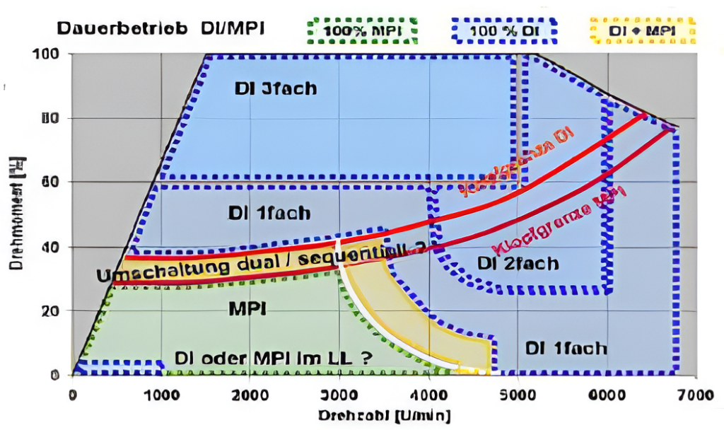 Umschaltung dual/sequentill - dual/comutare secvenţială când sunt ambele tipuri de injecții Klopfgrenze – limita de detonaţie