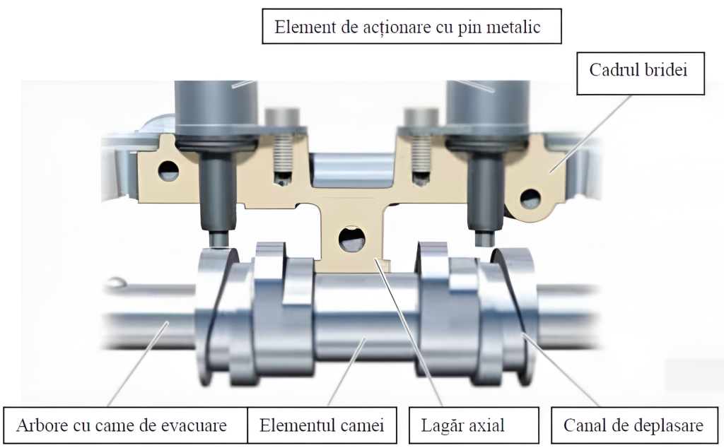 Șanţul de deplasare al elementului camei trebuie să fie format în aşa fel încât pinul de acţionare din metal să fie împins înapoi după ce schimbarea a fost făcută . Pinul din metal nu poate fi activ după ce a fost schimbat înapoi de către UC motor.