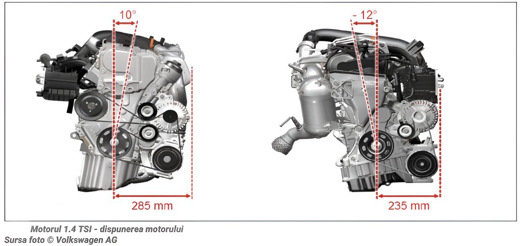 La toate motoarele din familia EA211, din care face parte și motorul de 1.4l , sunt rotite într-o parte cu ţevile galeriei de evacuare spre înapoi.