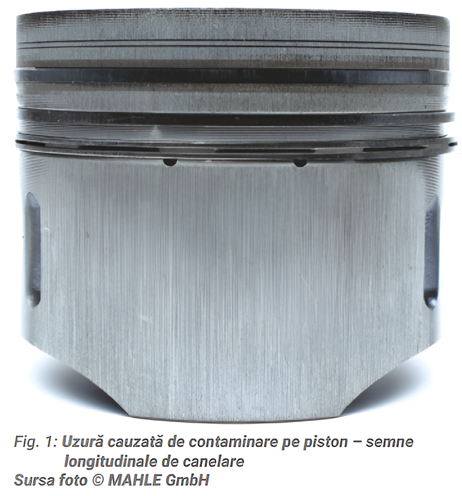 ● Fusta pistonului prezintă gripare, un model de uzură semnificativă la împingere-tragere (Fig. 1 ).