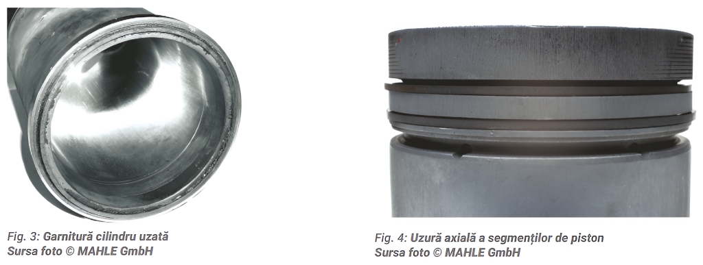 ● Segmenții pistonului și canelurile sunt extrem de uzați. (Fig. 4).