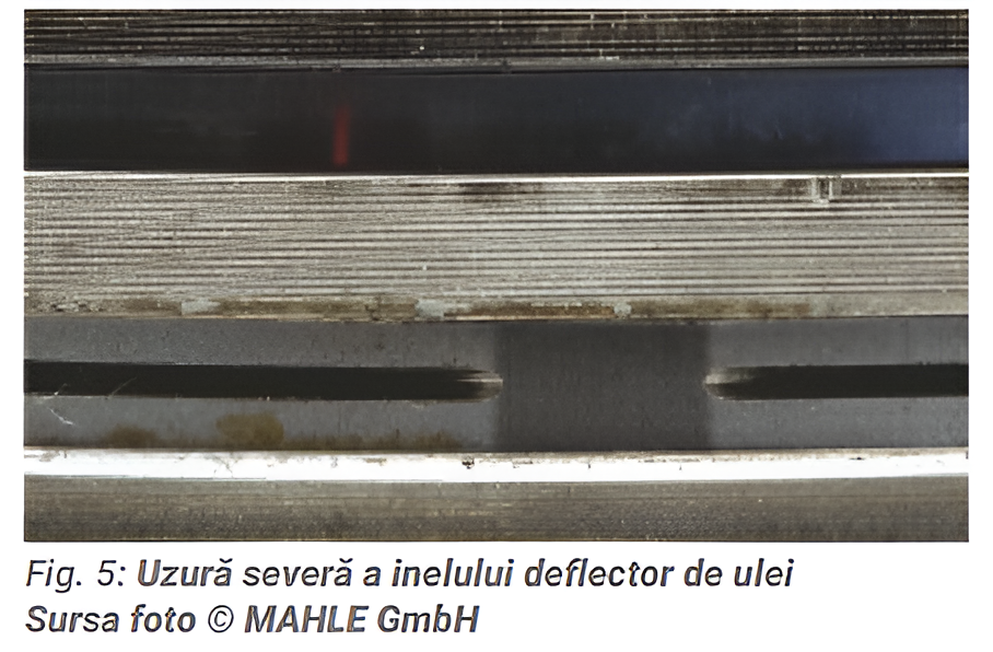 ● Fețele segmentului inelului deflector de ulei sunt uzate (Fig. 5).