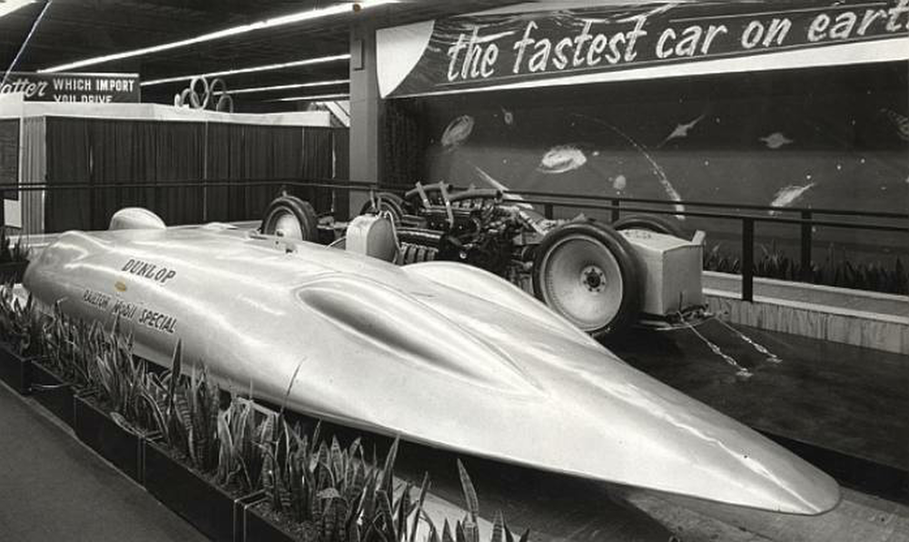 Bariera de 600 km/h a fost depășită în 1947 de John Cobb, la volanul unui automobil Railton Special Mobile.