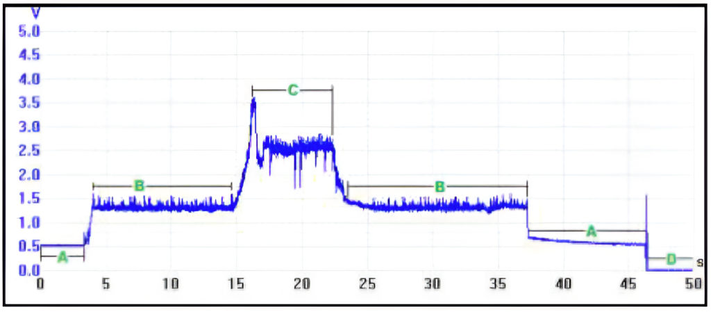Semnalul (tensiune) generat de senzor, în funcție de presiunea combustibilului din rampă, variază între 0 și 70 mV. Circuitul electronic integrat în senzor evaluează și transformă acest semnal într-o tensiune ce variază între 0.5 … 4.5V.