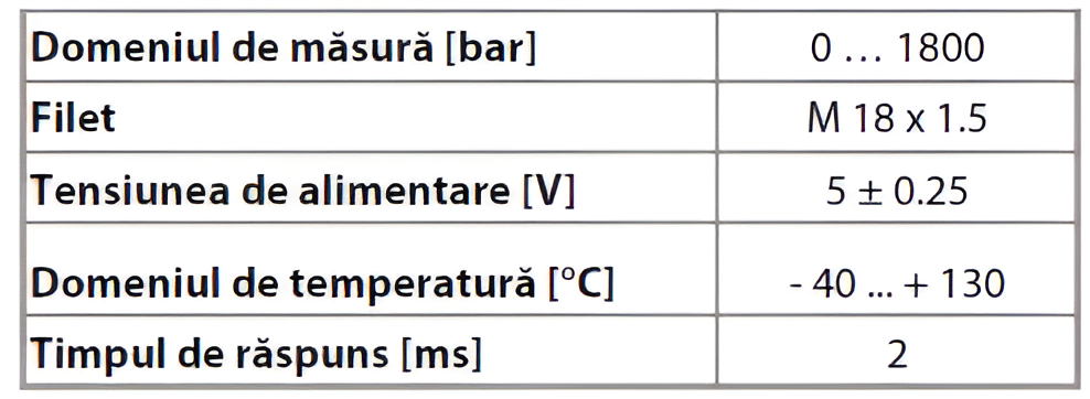 Domeniul de măsură al unui senzorului de presiune rampă combustibil se situează în intervalul 0 … 1800 (2000) de bari.