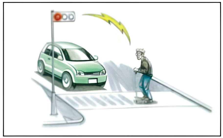 În figura de mai sus este ilustrat un exemplu de comunicare şi avertizare între un pieton şi vehicul