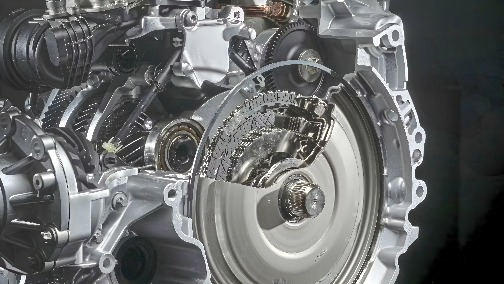 Motorul electric, împreună cu invertorul, este integrat într-o nouă transmisie foarte compactă cu dublu ambreiaj și opt trepte de viteză (8F-eDCT). Această dezvoltare se numește "eDCT" deoarece motorul electric este integrat direct în cutia de viteze, iar comanda sistemului mecanic se realizează electrohidraulic. Un motor electric acționează ambele circuite ale ambreiajului dublu.