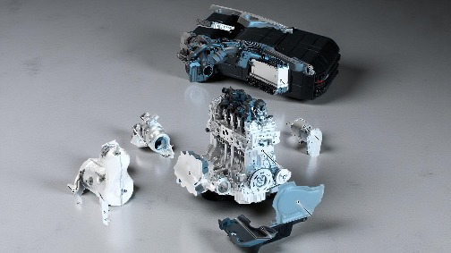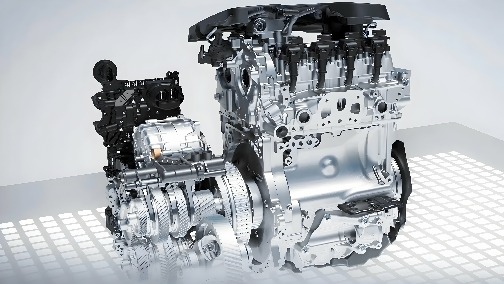 ardere internă, se adaugă o putere de antrenare electrică de 20 kW. Având în vedere cilindreea de 1496 cm³, aceasta reprezintă o putere litrică remarcabilă. Noua unitate motor-transmisie are dimensiuni compacte și este montată transversal în vehicul, între fuzete.