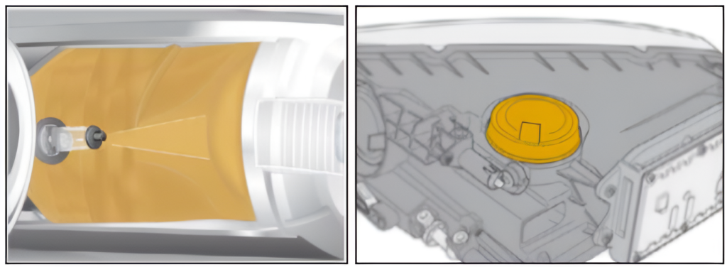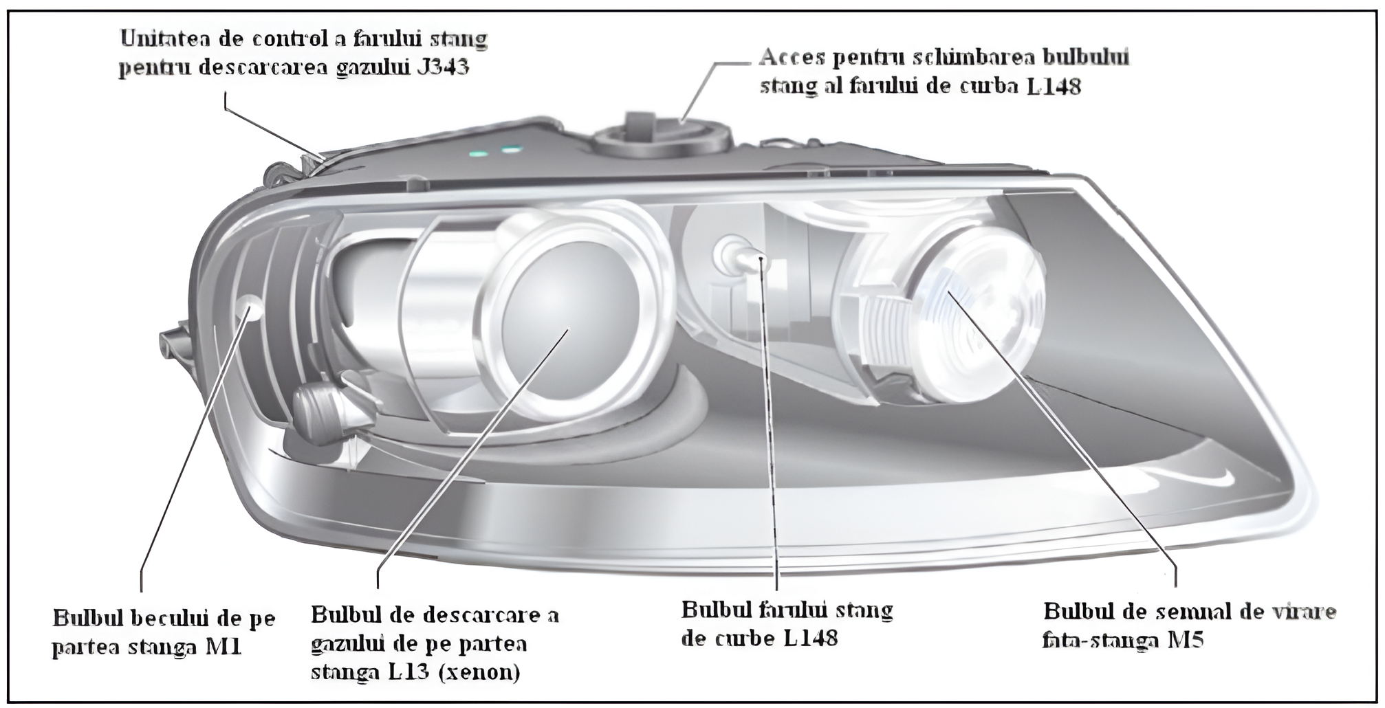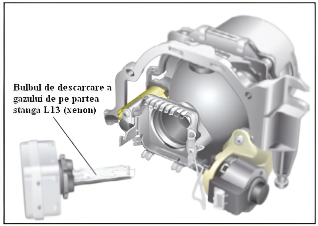 - Bulbul de descărcare a gazului (pentru faza scurtă, lungă şi luminile dinamice de curbe);