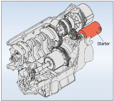 Turația mare și cuplul mic al starterului sunt transformate într-o turație mică și un cuplu mare de pornire la motor. Printr-un dispozitiv de eliberare, starterul se deconectează atunci când turația motorului devine mai mare decât turația starterului.