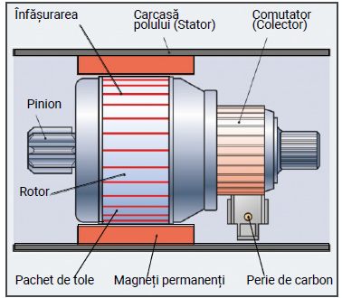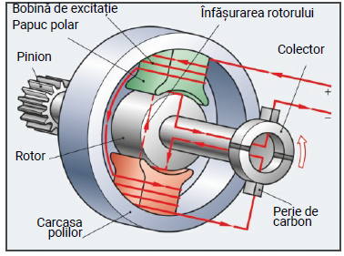Un motor de pornire (demaror) (Fig. 5) este alcătuit dintr-o parte mobilă (rotor sau arbore) și o parte staționară (stator), cu carcasă polară.