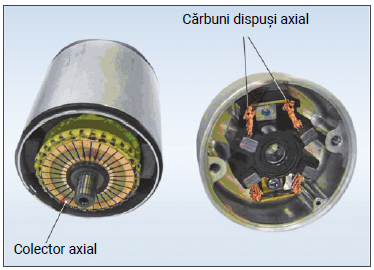 Periile de carbon sunt pretensionate cu arcuri și apasă radial (Fig. 6) sau axial (Fig. 7) pe colector.