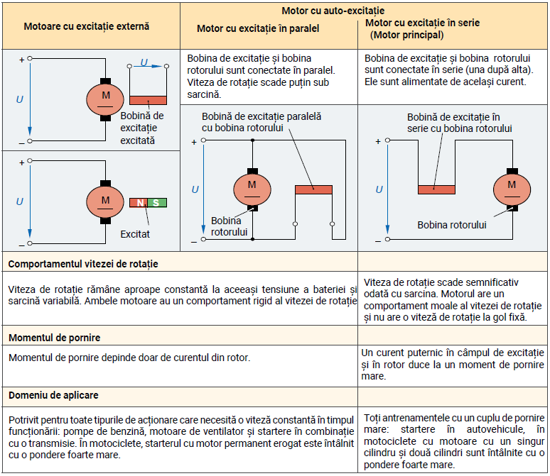 Un motor de pornire cu conexiune în serie ( Tabel 1, pagina 339) dezvoltă un moment de pornire mare.