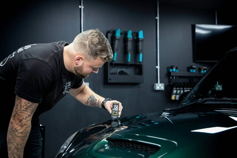 Înainte de a efectua orice fel de corecție a vopselei, este recomandabil să folosiți un aparat de măsură profesional pentru a măsura adâncimea vopselei de la stratul superior până la suprafața caroseriei, fie că este vorba de metal, fibră de carbon sau plastic.