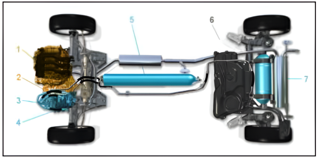 Cu ajutorul unei transmisii automate (cu mecanism epicicloidal) puterea motoare este trasmisă la roți în funcție de modul de operare: termic, aer, hibrid sau regenerare.