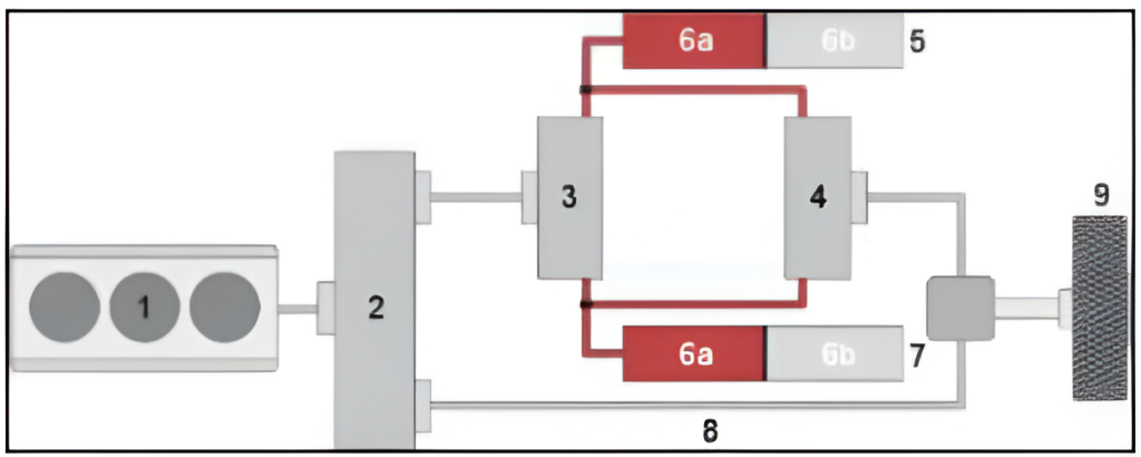 Transmisia este epicicloidală cu control electronic (EGC - Electronically Gearbox Control) și face managementul celor două surse de putere (motor termic și motor hidraulic). Acesta înlocuiește cutia de viteze manuală de pe un automobil convențional și este capabilă de schimbări automate de trepte.