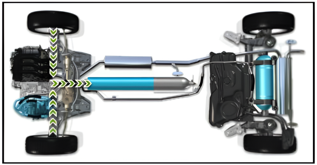 În modul hibrid, pentru propulsie, sunt utilizate două surse de energie: motorul termic și acumulatorul hidraulic-aer. Sistemul electronic inteligent de control selectează automat modul de funcționare a celor două surse, în funcție de cererea de cuplu a conducătorului auto și pentru a permite reîncărcarea acumulatorului la deplasarea cu viteze mici a automobilului. În acest mod sunt îndeplinite atât condițiile de performanță dinamică cât și cele maniabilitate.