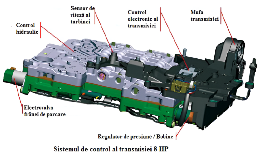 Sistemul de control al noii transmisii 8HP a fost conceput ca o soluţie mecatronică şi constă într-o