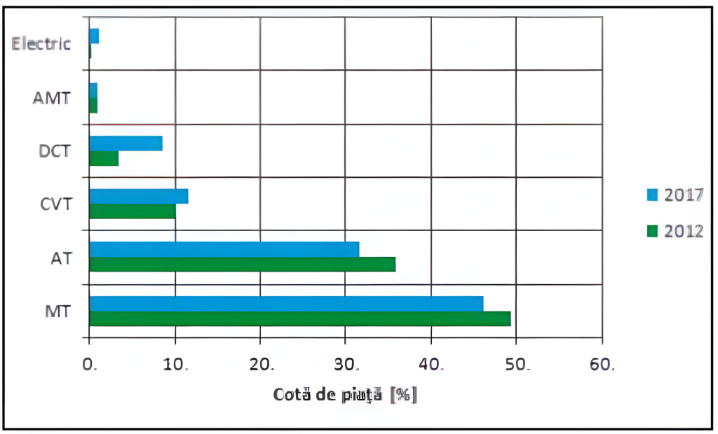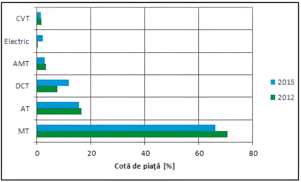 Cota de piaţă a automobilelor la nivel global, în funcţie de tipul transmisiei