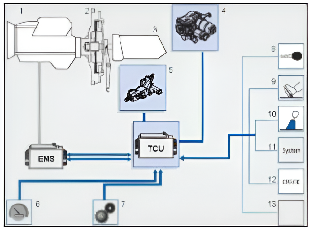 La o transmisie manuală automatizată controlul cuplului motor, în timpul schimbării treptelor de viteză, are un impact semnificativ asupra comfortului. Din acest motiv există un schimb de informaţii continuu între modulul electronic de control al transmisiei (TCU) şi calculatorul de injecție (EMS).